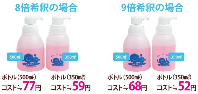 コストの面からみても、希釈用シャボネット石鹸液は、とてもお得なのです。