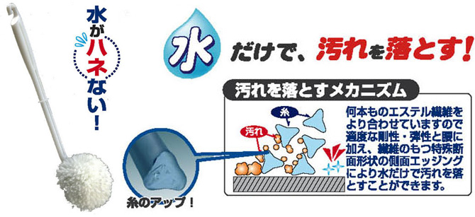 本製品はエステル繊維を使用し、汚れが取れ易く、水切れがよい構造になっています。